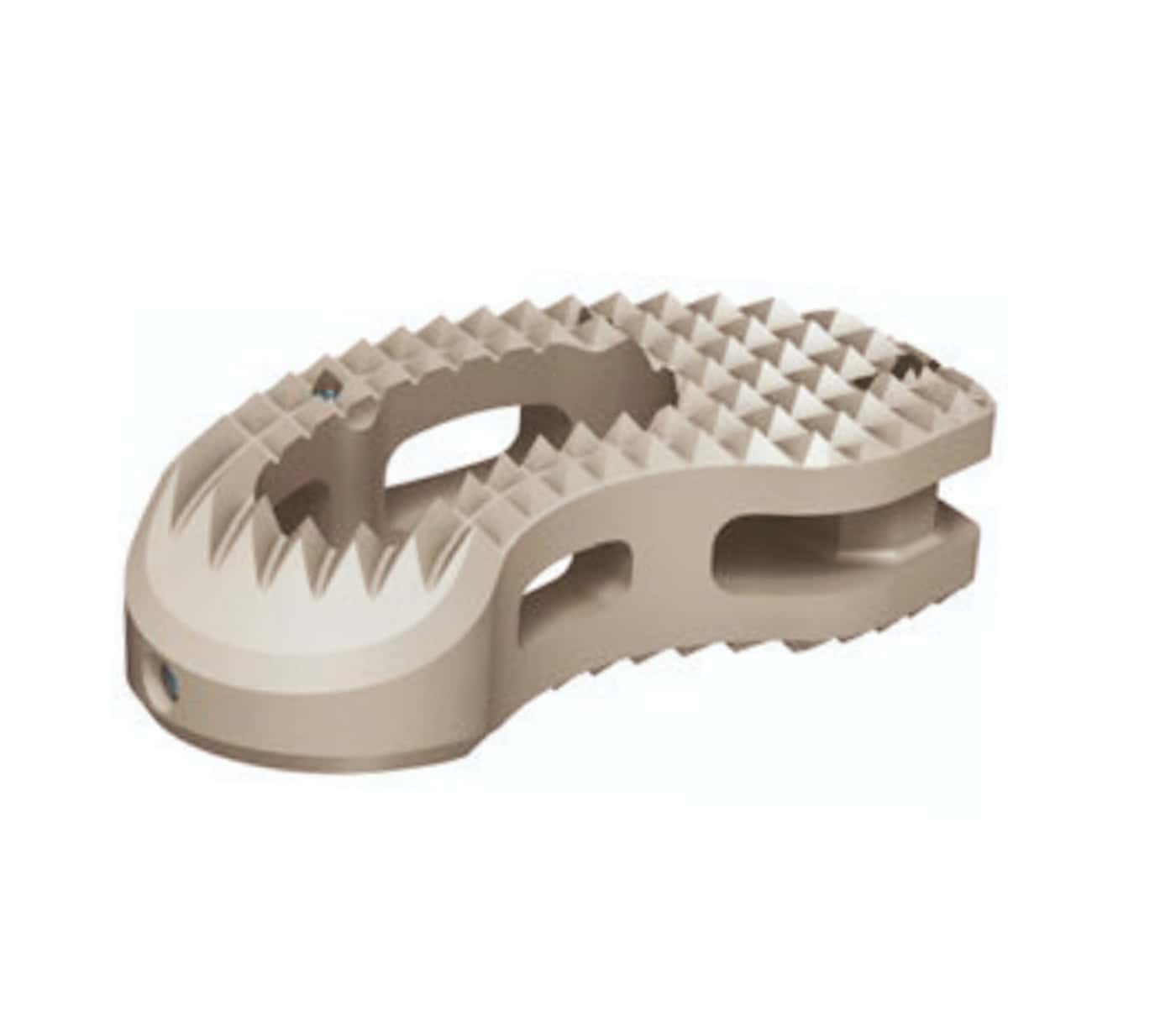 El TLIF Cage OVERFIX® es un implante lumbar de fusión intersomática fabricado en PEEK con marcadores radiopacos de tantalio, diseñado para ofrecer osteointegración segura y compatibilidad con resonancia magnética; cuenta con dientes piramidales antidesplazamiento, punta autodistractora para facilitar la inserción, ventana axial para injerto óseo y guías superficiales para posicionamiento, indicado en degeneración discal, inestabilidades espinales y espondilolistesis, no recomendado en fracturas, tumores, deformidades mayores u osteoporosis.